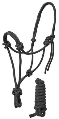 Rider's Choice Braided Rope Halter With Matching 6ft Lead is fully adjustable and designed to fit snugly. Rope Halters have no hardware to break, making it the preferred choice of trainers, clinicians, outfitters, trail riders, working cowboys and riders from all disciplines. Throat knot should touch the horse's throat latch, ropes from that knot to the crown should come up behind the jaw bone. Great for everyday use.