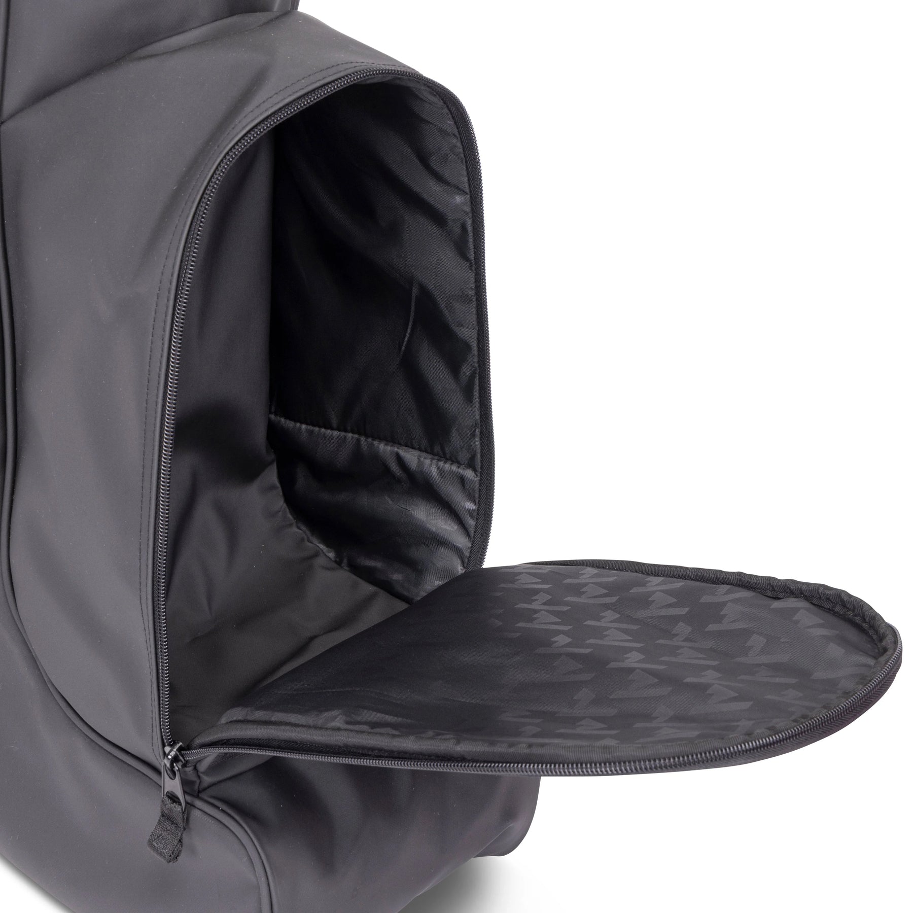The sleek Aubrion React hat, whip & boot bag keeps all your key riding competition items clean and protected. The roomy main section benefits from an inner divider for individual boot protection. The zip opening hat compartment is fully padded and all sections have a smart jacquard lining. The wipe clean outer has a sporty feel and the bag is styled with an adjustable shoulder strap in smart signature web. Further detail: whip pocket, hat and boot sections, two way zips, fully adjustable and detachable shoulder strap, top grab handle, inner boot divider, full jacquard lining, edge piping for extra durability, hardwearing feet, matt logo prints. Dimensions: W.39cm, H.59cm, D.21.5cm. Part of the sporty & practical Aubrion React luggage range.
