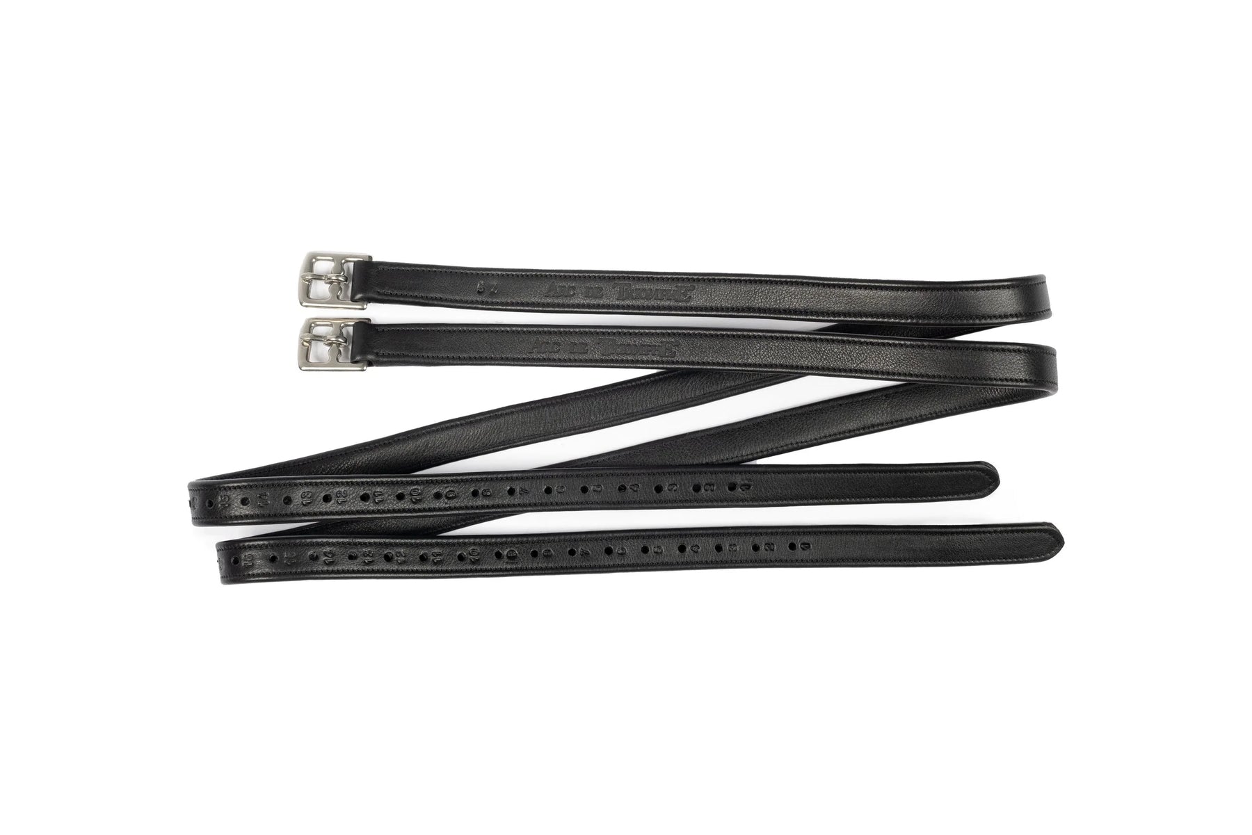 The ADT Calfskin stirrup leathers are reinforced from buckle to end with Nylon (wrapped and carefully stitched) for added security. Soft and supple, yet they will not stretch… No one can resist their feel! They measure just under 1″ wide and have half holes for better leg positioning. Both leathers feature low profile stainless steel buckles.