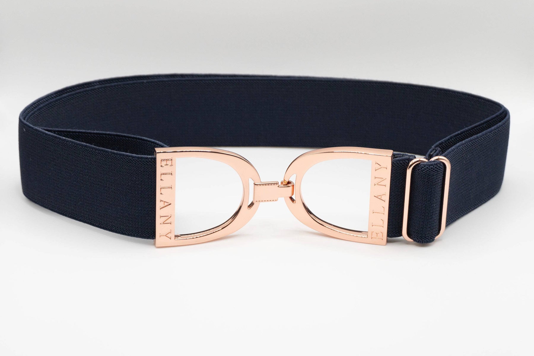 Huston x Ellany - Navy - 1.5" Rose Gold Stirrup Equestrian Elastic Belt