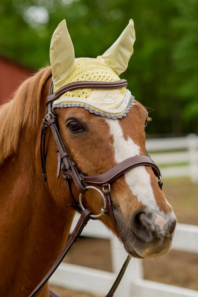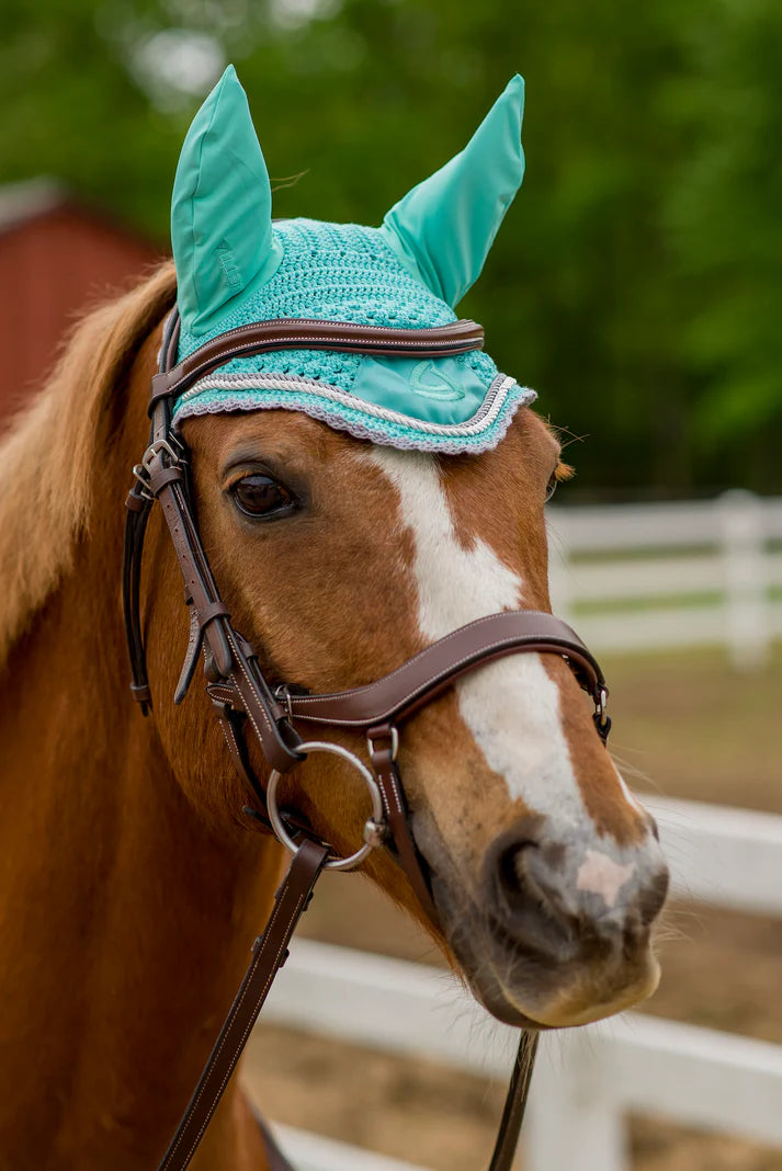 Pretty and functional the Lettia Shadow Ear Net is sure to get you and your horse compliments everywhere you go! Horses can become distracted by flies while riding and this will aid in a more productive ride while keeping you and your horse a bit more safe. This fly bonnet is handmade with open weave cotton to allow for cooler coverage. We used Spandex for the ears, to allow for a little stretch, which gives your horse freer movement. Washing Instructions - We suggest hand washing this bonnet with a mild detergent in cold water and lay flat to dry, when needed. Pair with matching Shadow Collection Saddle Pad, Polo Wrap, and Sun shirt for a complete look.