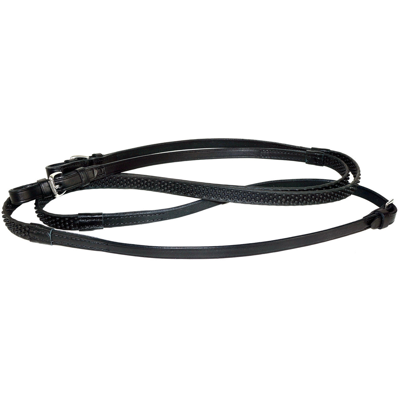 "As someone who likes flexible and grippy reins, these are the perfect combination of both. I also love that they are grippy enough for me to ride in without gloves without worrying that they will slip. An added bonus is that they come in black, as it's always been hard for me to find grippy rubber reins that I can use on my black dressage bridles."