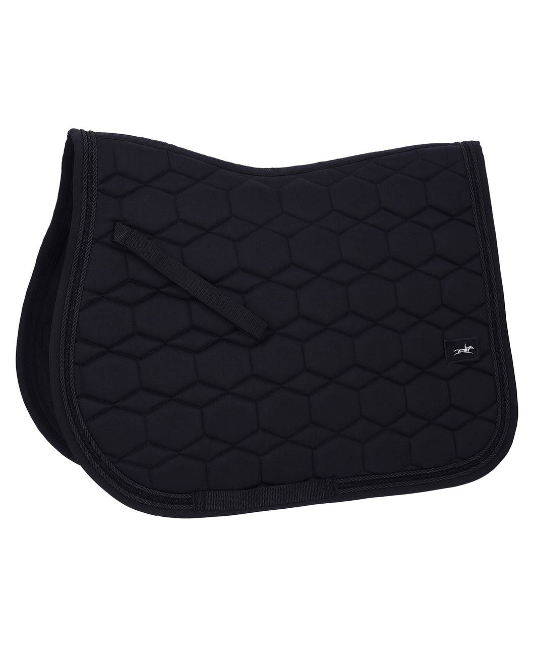 This saddle pad stands out for its shape stability, provided by the material of the outer fabric. The high-density foam filling and polyester felt offer exceptional shock absorption, significantly enhancing comfort for both horse and rider. The Quick Dry underside ensures fast drying and a comfortable feel. Subtle decorations with two cords and a tape with a slight sheen add stylish accents, while the features are embroidered along the spine. A key innovation: The girth straps can be shortened, allowing for easy adjustment to different needs. Perfect for riders who prioritize comfort, quality, and flexibility.