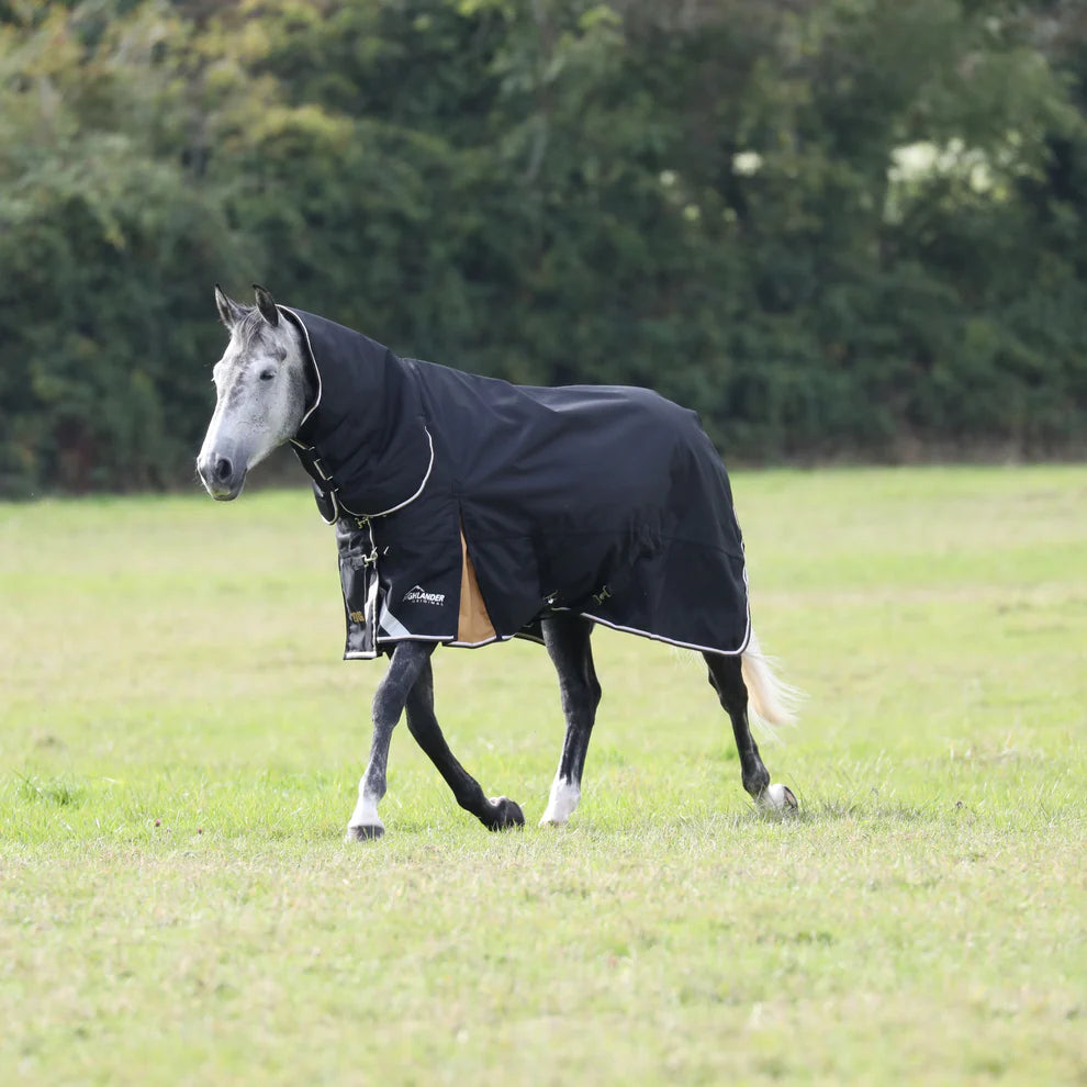 A sophisticated rug range providing enhanced protection and luxurious comfort for the turned out horse. Balancing optimum strength-to-weight ratio with a ripstop weave to prevent the spread of small tears, Highlander Plus rugs offer excellent resilience. The 100g polyfill lining of this neck rug takes the chill off cooler field-days and nights. The neck is secured with touch close loops to three D-rings on the rug, and is fastened around the neck using quick fit touch close straps. Machine washable. Technical info: ShireTex® 1200 denier ripstop, waterproof and breathable PFC-free outer with taped seams. 100g polyfill. Waterproof to 3000mm, Breathability 3000g/m2. Durable Waterproof Repellent (DWR) prevents saturation - water beads on the fabric and runs off.