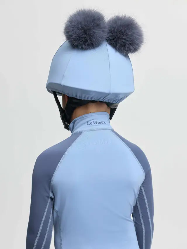 Double the joy for pom pom lovers, with this adorable double pom hat silk with contrasting peak. Made with 360° stretch, it will fit most helmet sizes with a snug and secure look.
