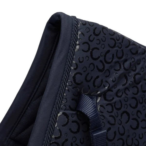 The Horze Lucca All Purpose Saddle Pad combines functional grip and comfort-enhancing design. Featuring a silicone print grip and extra foam padding in the seat area to mimic the benefits of a correction pad, it offers improved saddle stability and horse comfort. The pad is finished with a slanted quilt pattern, embroidery along the spine, a long billet strap attachment, and an adjustable lower girth strap for a secure, tailored fit.