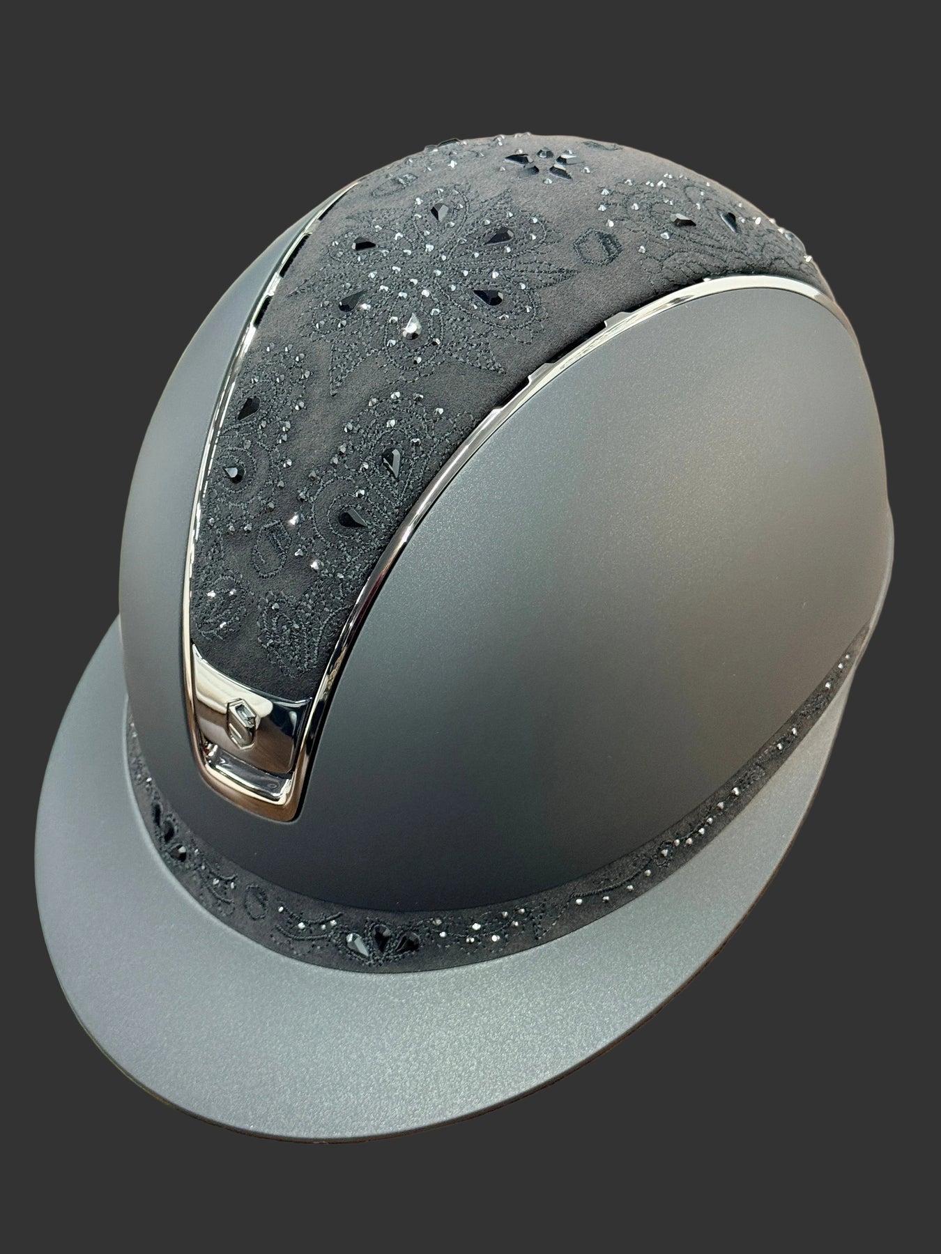 The Shadowmatt is available with the dressage chin strap option: this option allows women to wear their hair in a bun without being constrained by the harness of the helmet. This chin strap is shorter by 2.5 cm in order to allow more room for the hair bun.