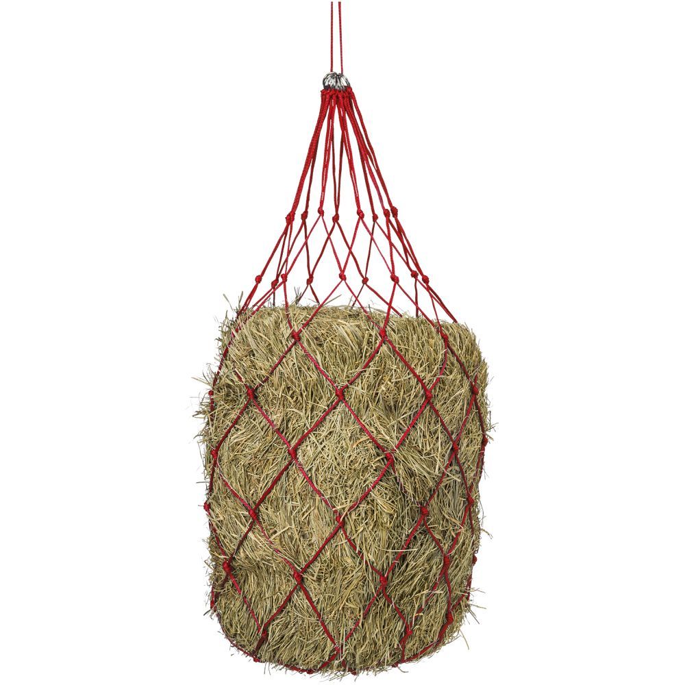This large hay net holds up to a half bale of hay to keep your horse busy at the show, campground or trailer. Made of the strongest poly hay cord for the longest wear. Knotted style has 4" x 4" square openings for easy eating.